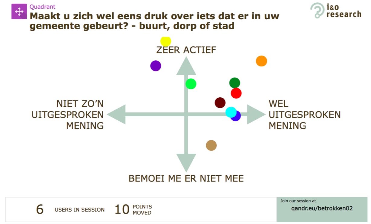 I&O Research has successfully employed QANDR in larger groups, like a debate on the Dutch elections in March. However, QANDR particularly comes into its own in smaller groups, like the focus groups that I&O Research uses regularly. After having successfully done focus groups pilots, I&O Research and Noterik now want to intensify their partnership and start employing QANDR on a regular basis in I&O focus groups, with Noterik initially offering on-location support but sessions soon to be done independently by I&O Research. The QANDR dashboard allows for customers to set up sessions themselves. Noterik has also branded the application for I&O Research. The idea is that by using the application in the field, it can be fine-tuned and adapted to requirements by Noterik, making for a better application both for I&O Research and Noterik.